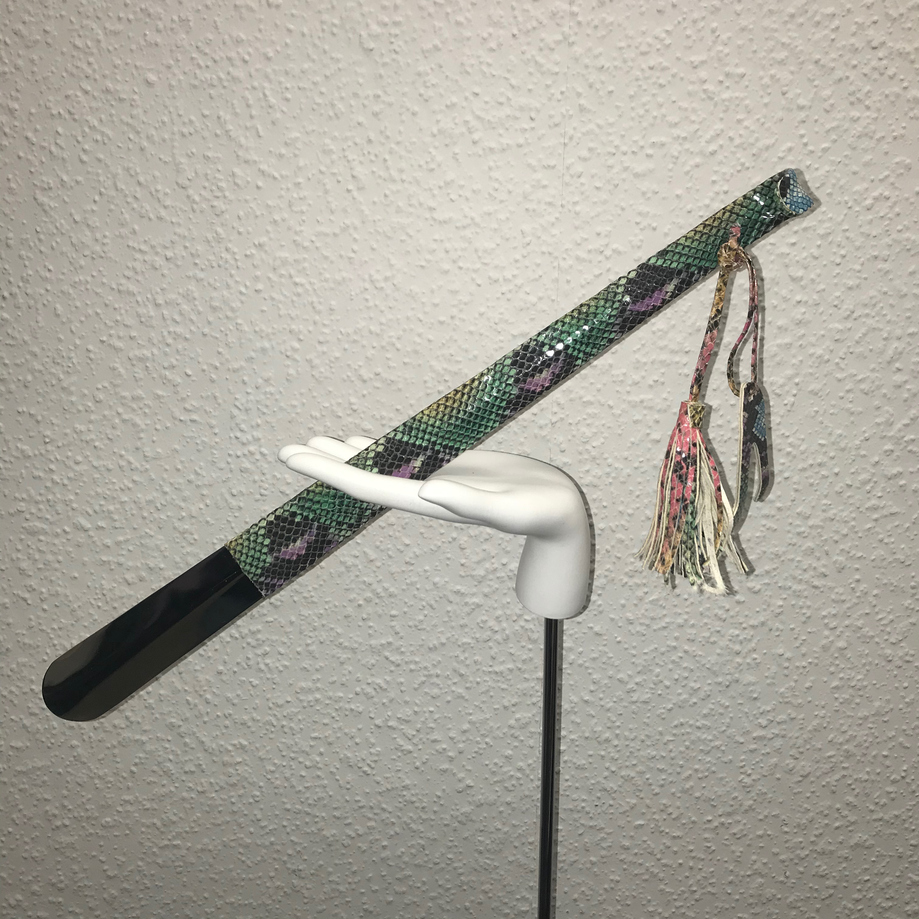 dieser schöne handgemachte Schuhlöffel ist das perfekte Geschenk, aus verschiedenen Materialen hergestellt und mit kleiner Quaste und Schuhanhänger
