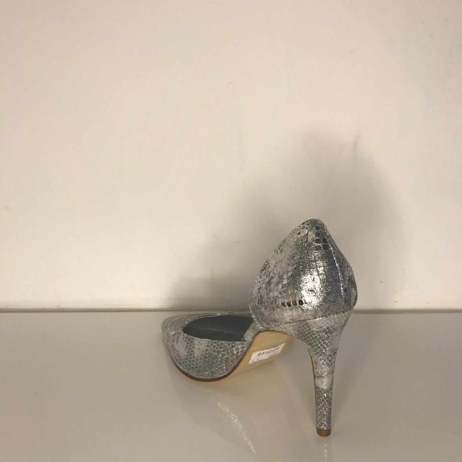 spitzer Pumps, innen offen aus strukturiertem Leder in silber