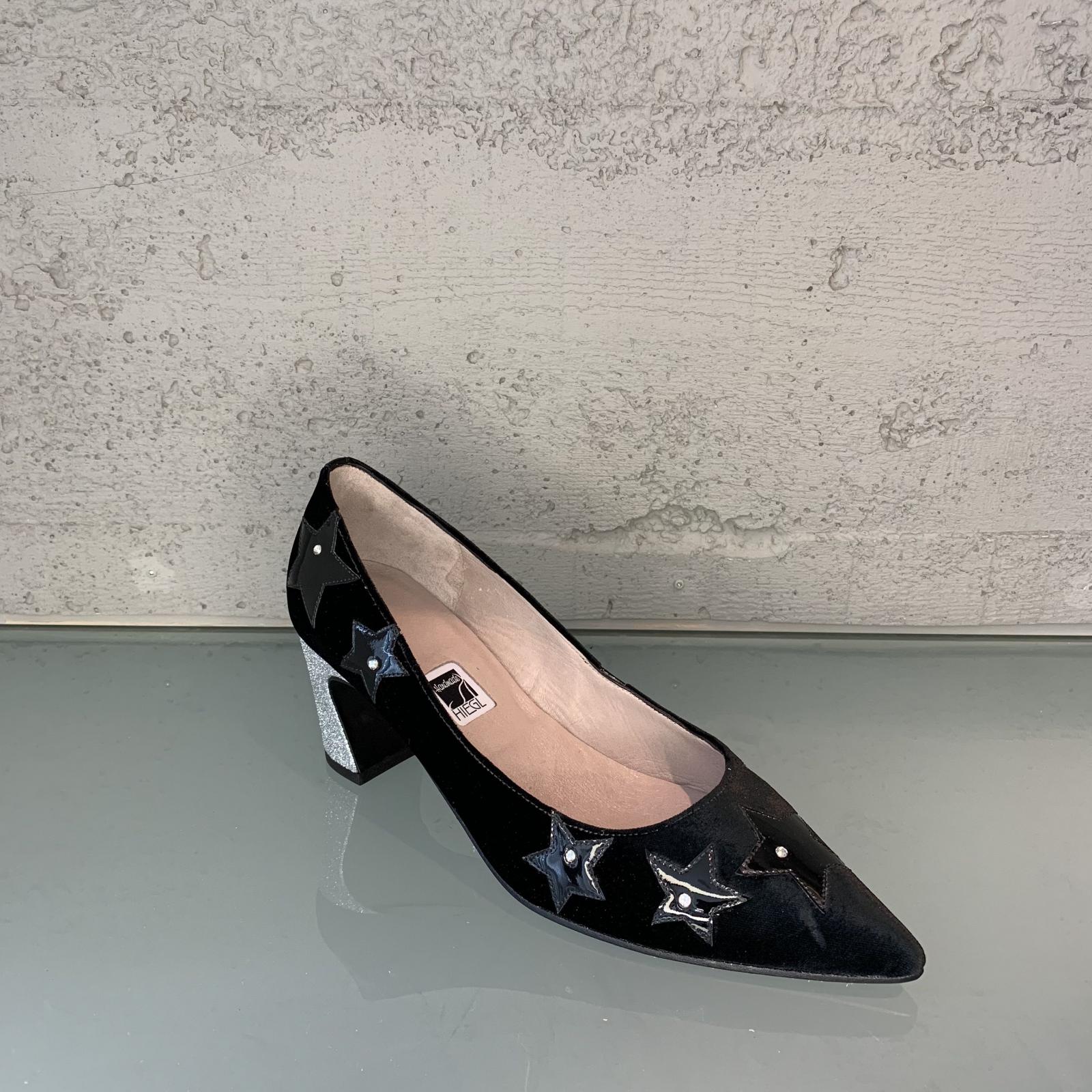 klasssicher Pumps aus Samt mit aufgenähten Sternapplikationen und Swarovski Steinen