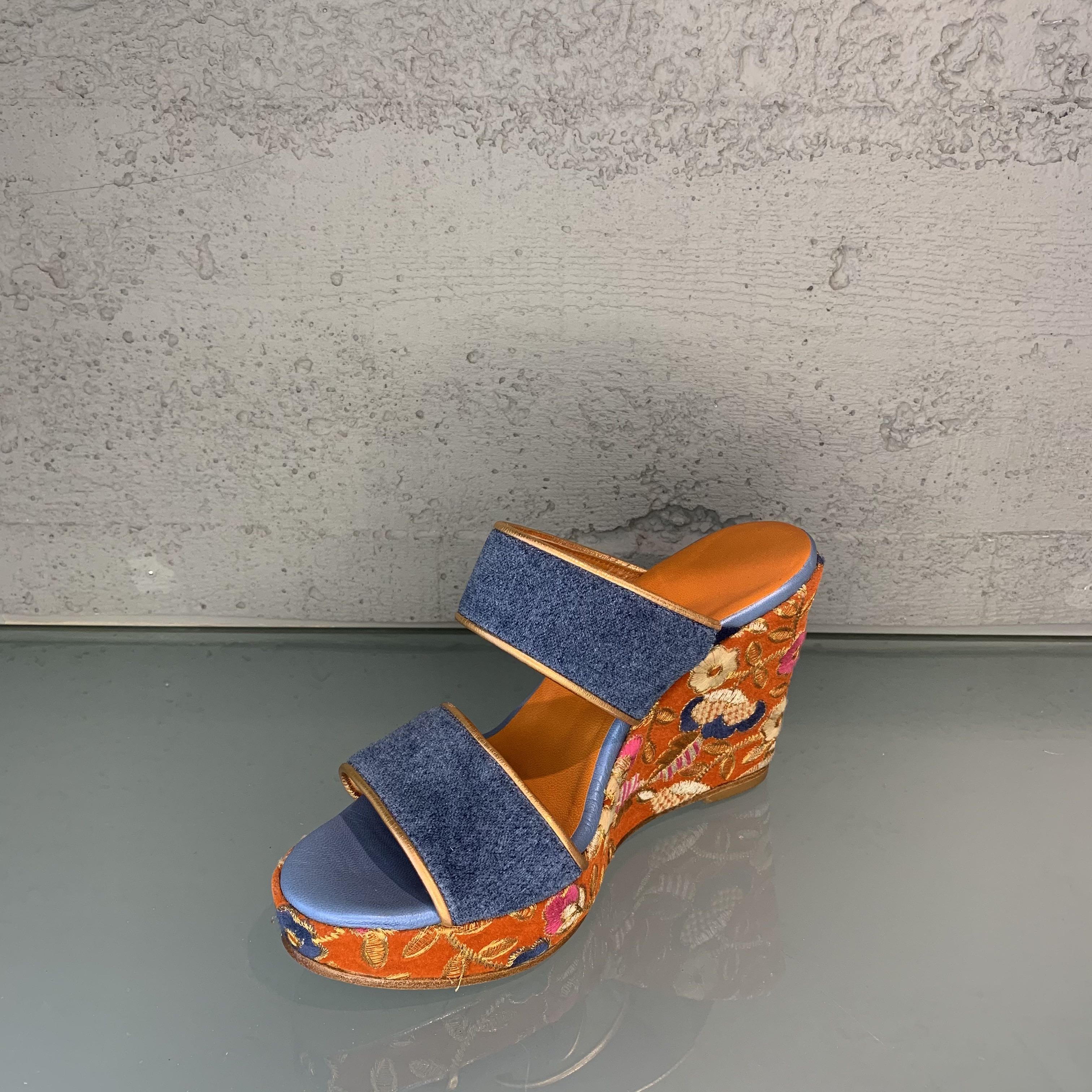 lässige Keil Sandale mit zwei Riemen, aus verschiedenen Stoffen